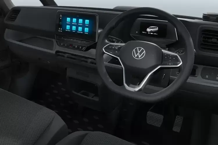 | Steering wheel, dashboard and central controls in black |